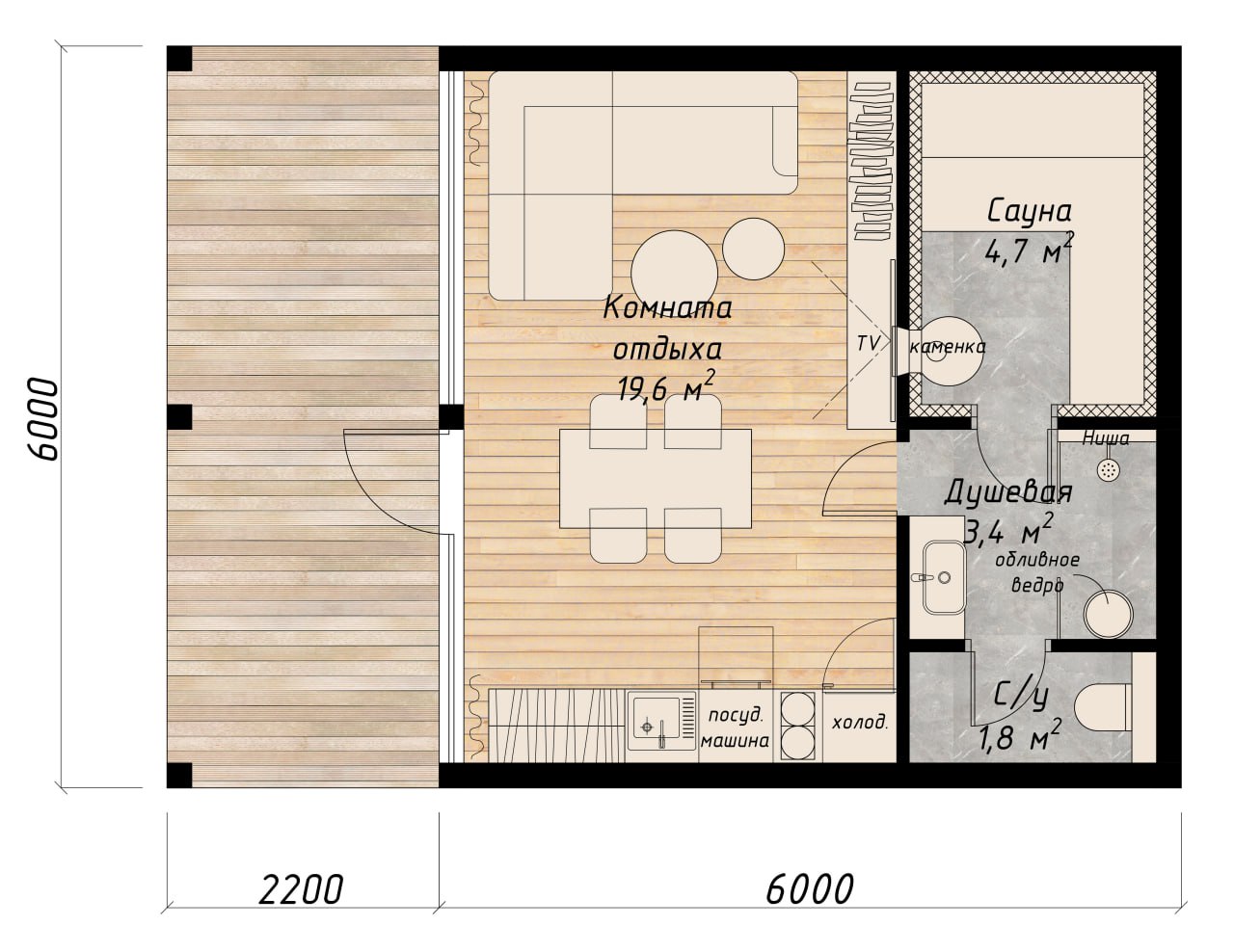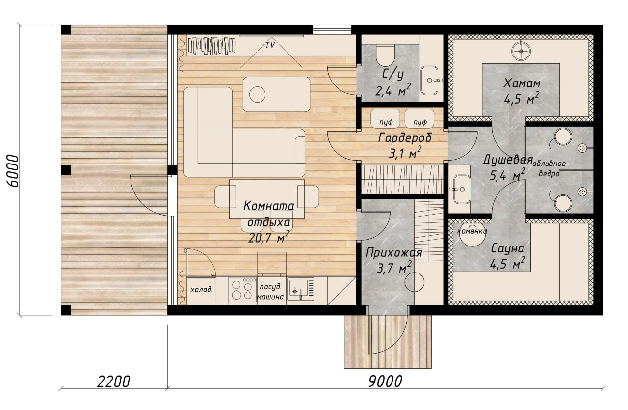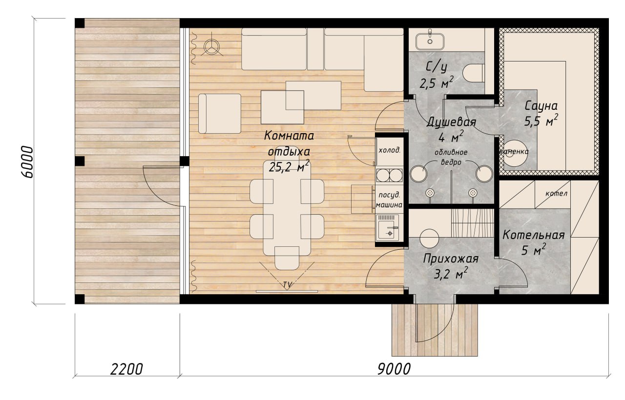 Данный проект может являться как домом для маленькой семьи, так и баней для большой компании. Однако вне зависимости от предназначения, дом будет дарить здоровье и жизненные силы.